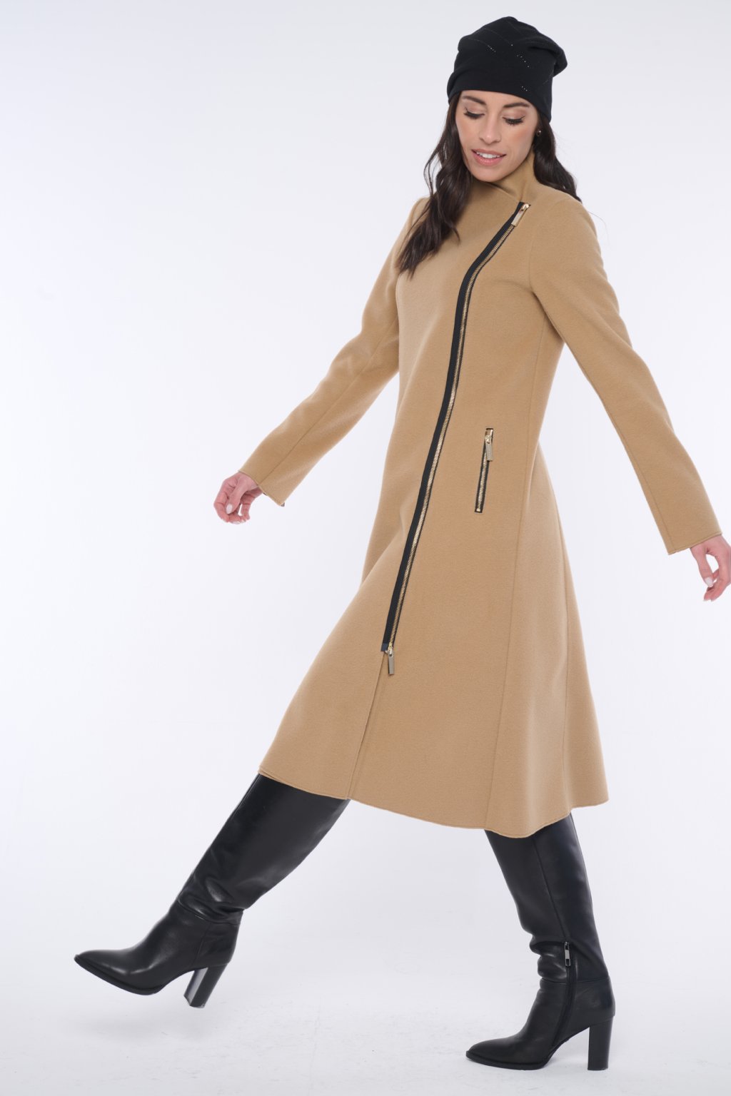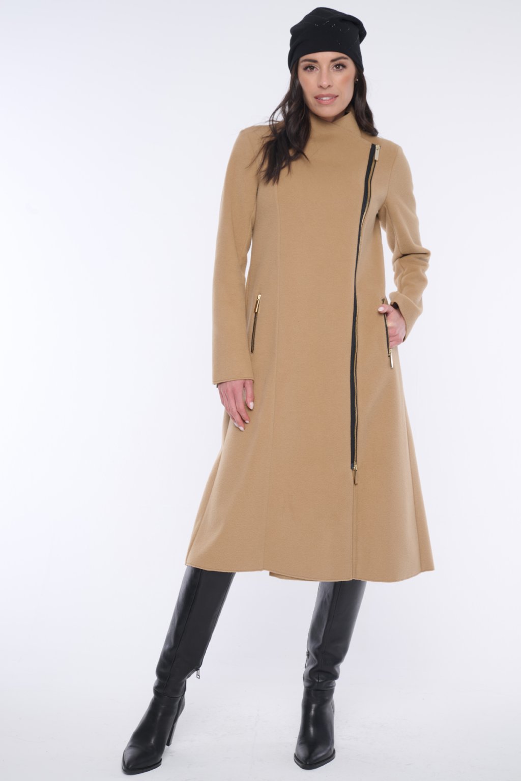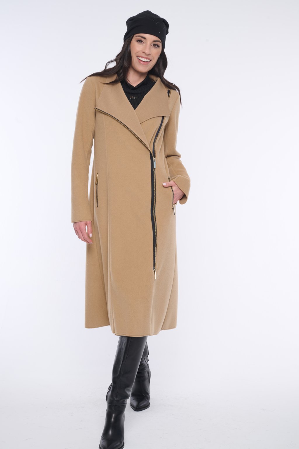 INFINITE 653-276 kabát dlouhý křivák camel