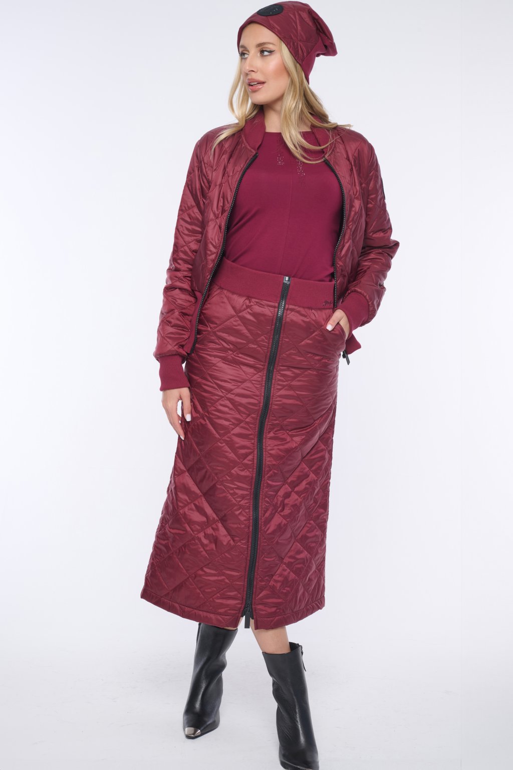 INFINITE 653-280K prošívaný krátký lehký bomber vínová