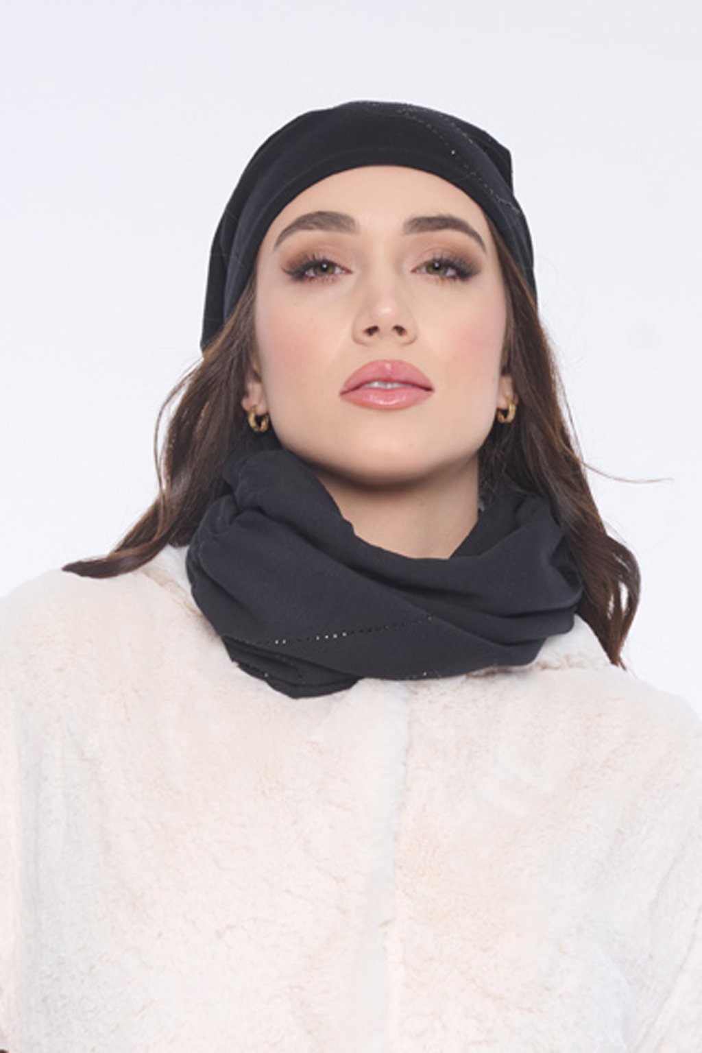 INFINITE 953-140 čepice černá a černé krystaly