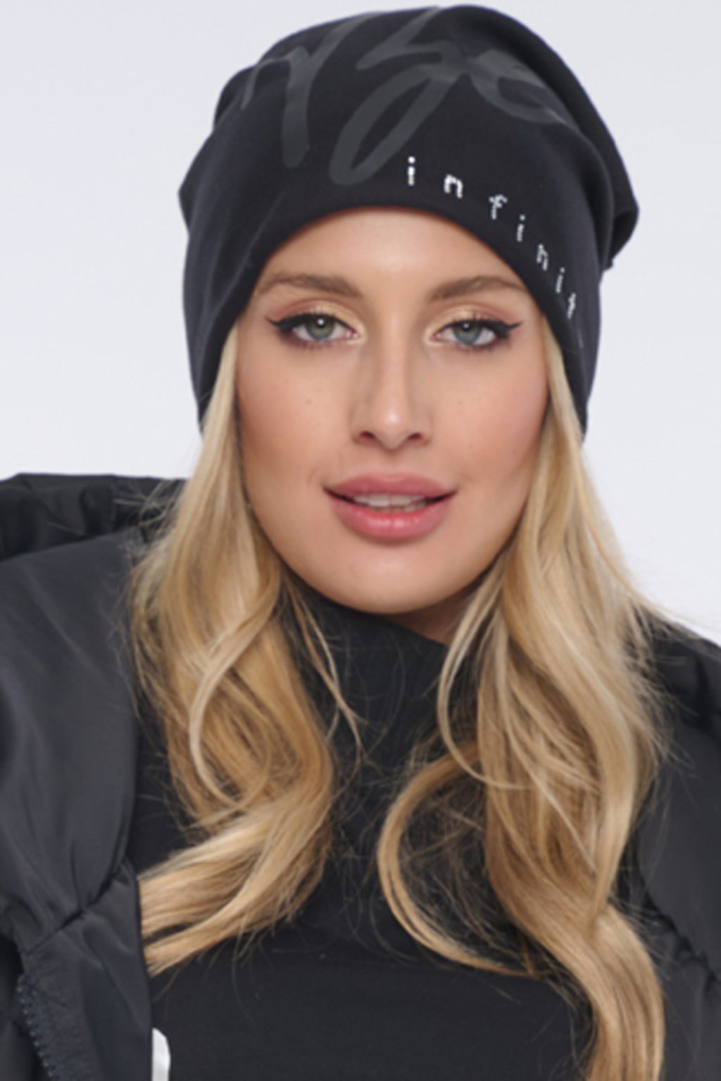 Čepice s lesklým tiskem a Infinite z krystalů Preciosa.