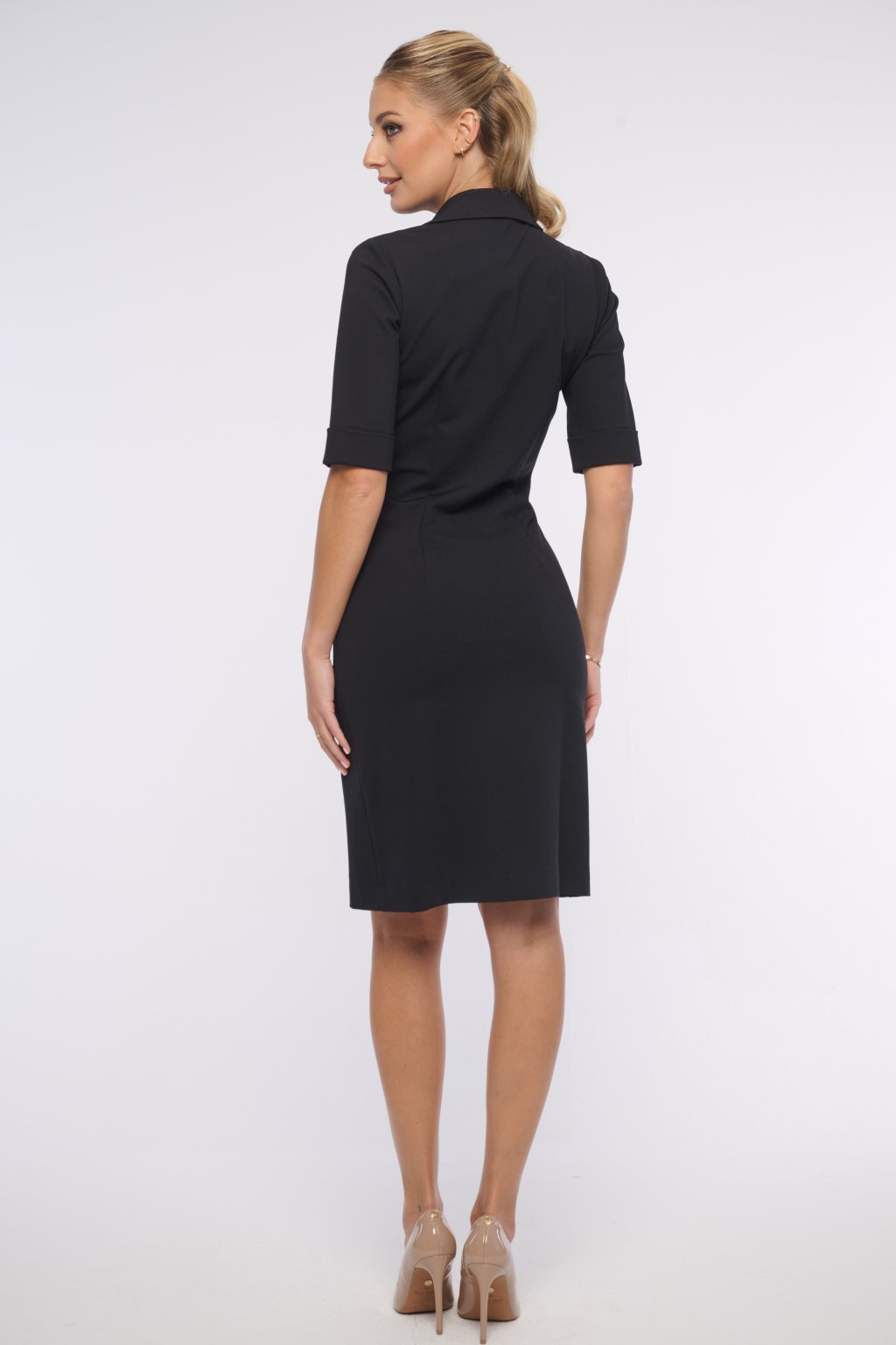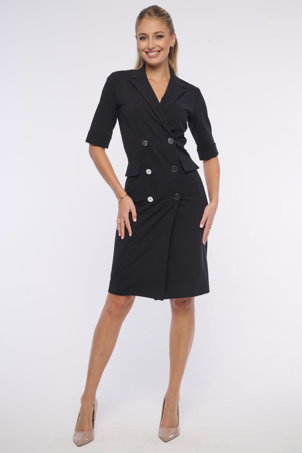 Elegantní šaty s tříčtvrtečním rukávem. Zlaté knoflíky.