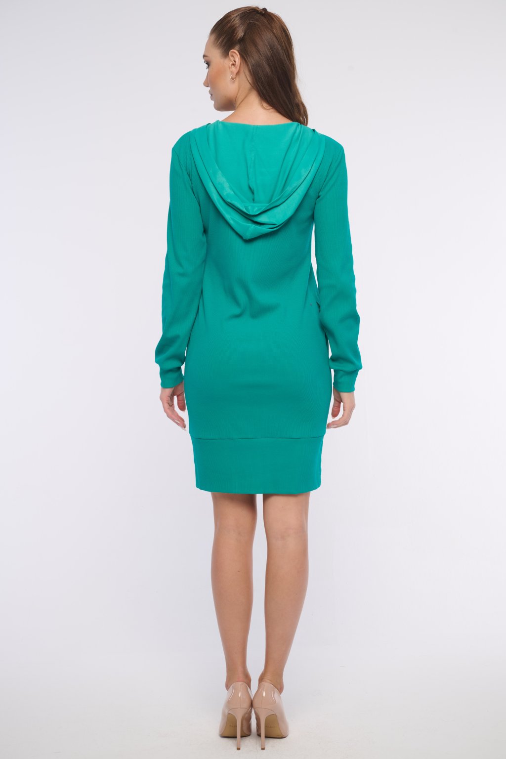 INFINITE 361-589 žebrové mikinové šaty smaragd