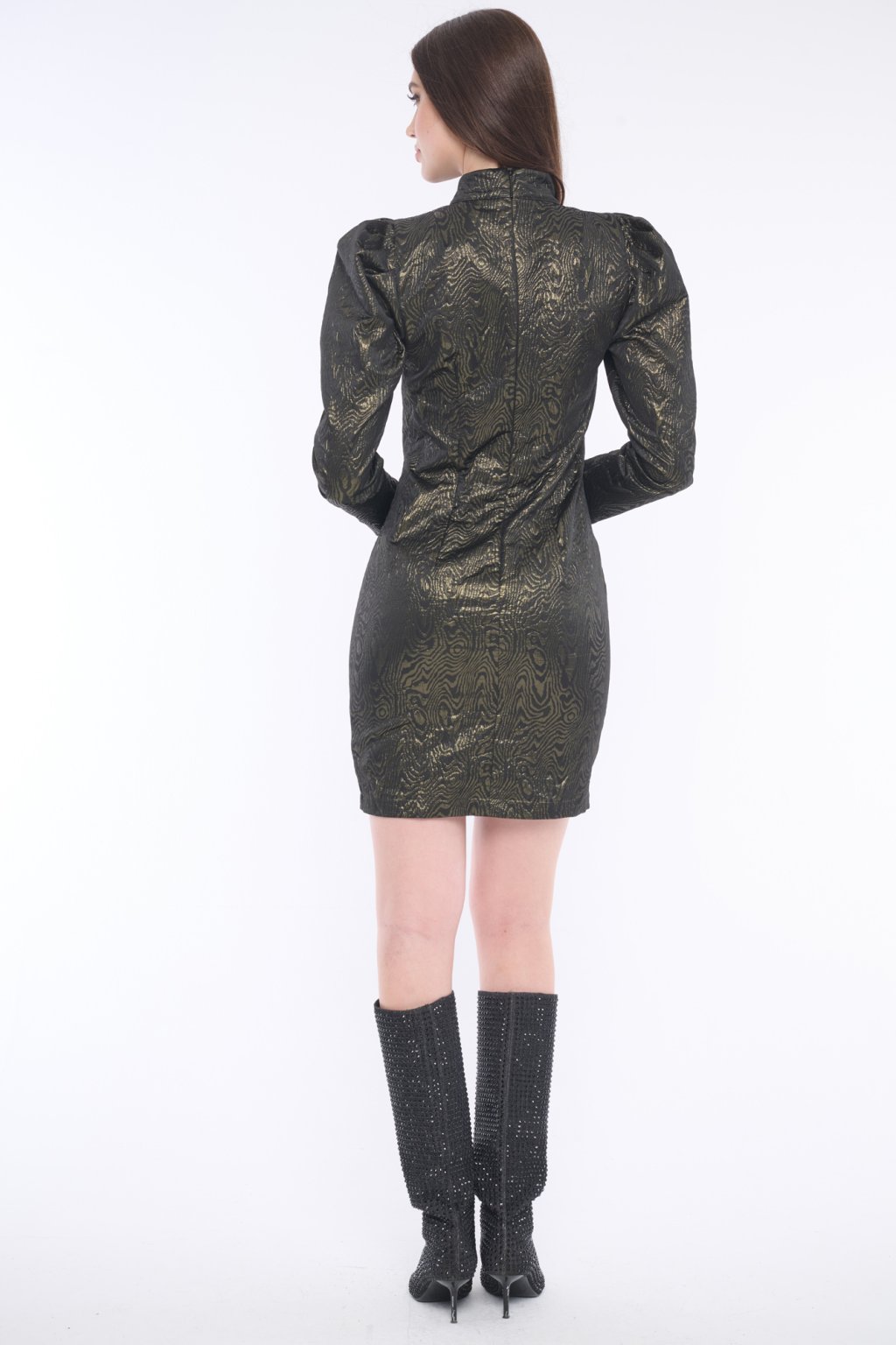 Luxusní koktejlové šaty s nabíranými rukávy. Pevná kvalitní látka s metalovými odlesky. Krystaly Preciosa