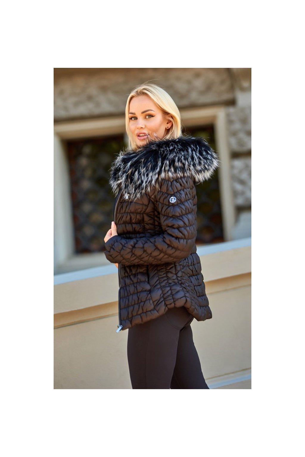 Módní dámská zimní bunda zdobená odepínacím bohatým přírodním kožešinovým lemem na kapuci. Kapuci nelze odepnout, kožešinový lem je odepínací. Bunda je celá prošitá elastickým stehem v těle i na rukávech, díky kterému se snadno přizpůsobí postavě. Je velice lehká, pohodlná a vytváří štíhlou siluetu. Proto je tato bunda velice oblíbená. Zadní délka bundy je cca 70 cm, délka rukávu od krku cca 77 cm (vel.40/42-XL).