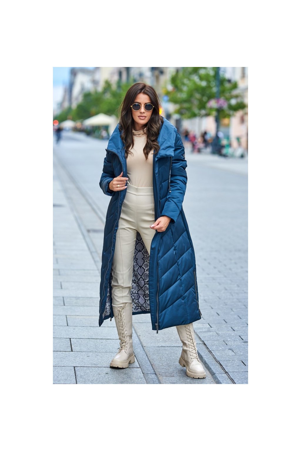 veronika modni bunda styl oversize dlouha petrolej