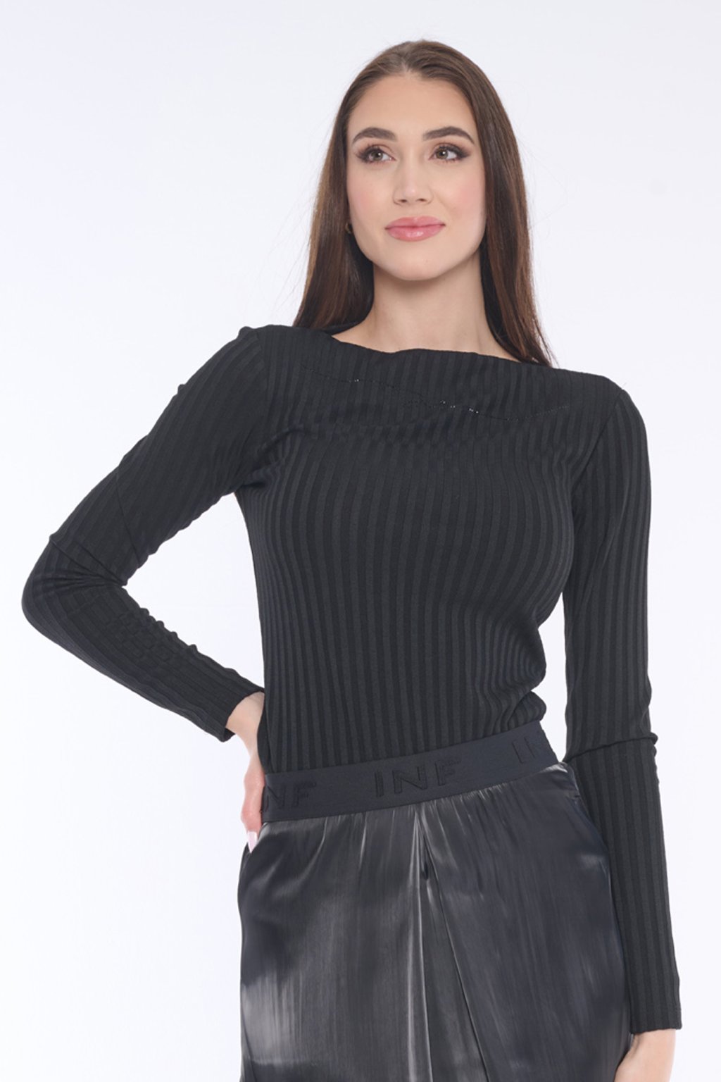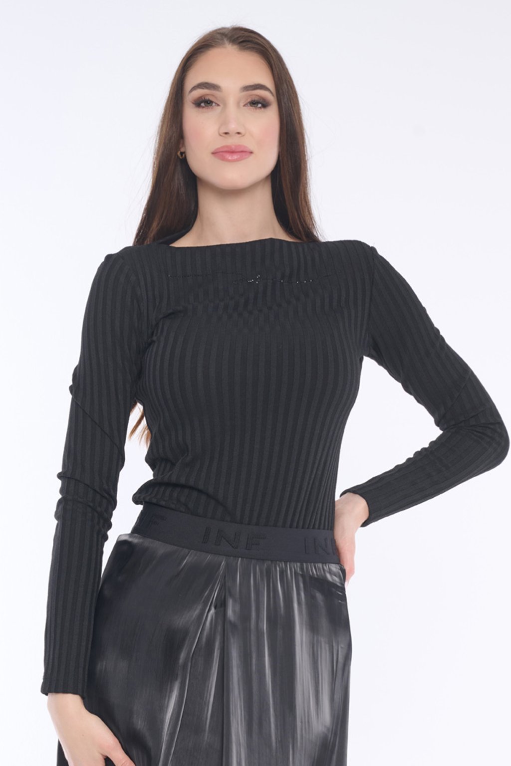 Třičko z žebrového úpletu s lodičkovým výstřihem s krystaly Preciosa.