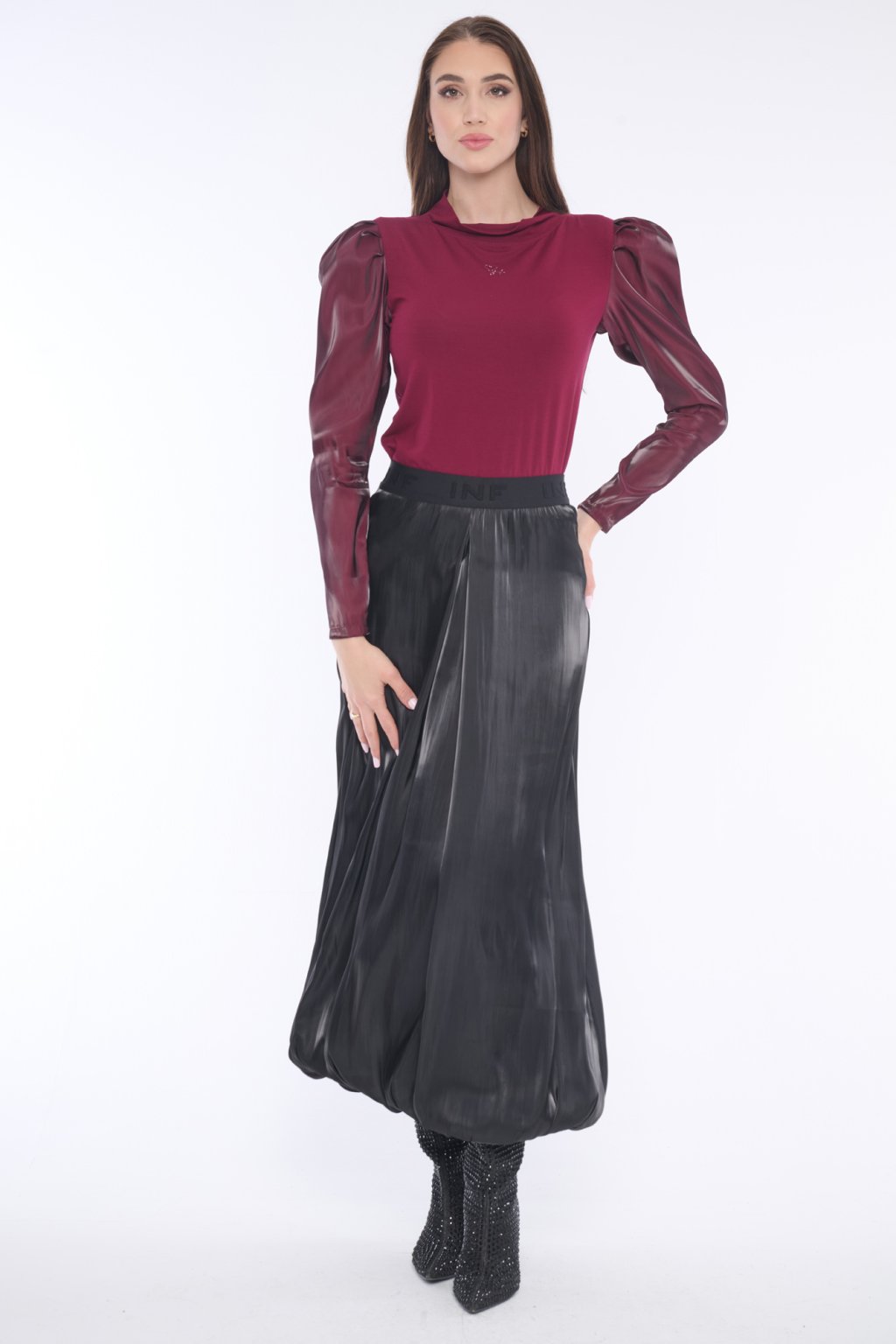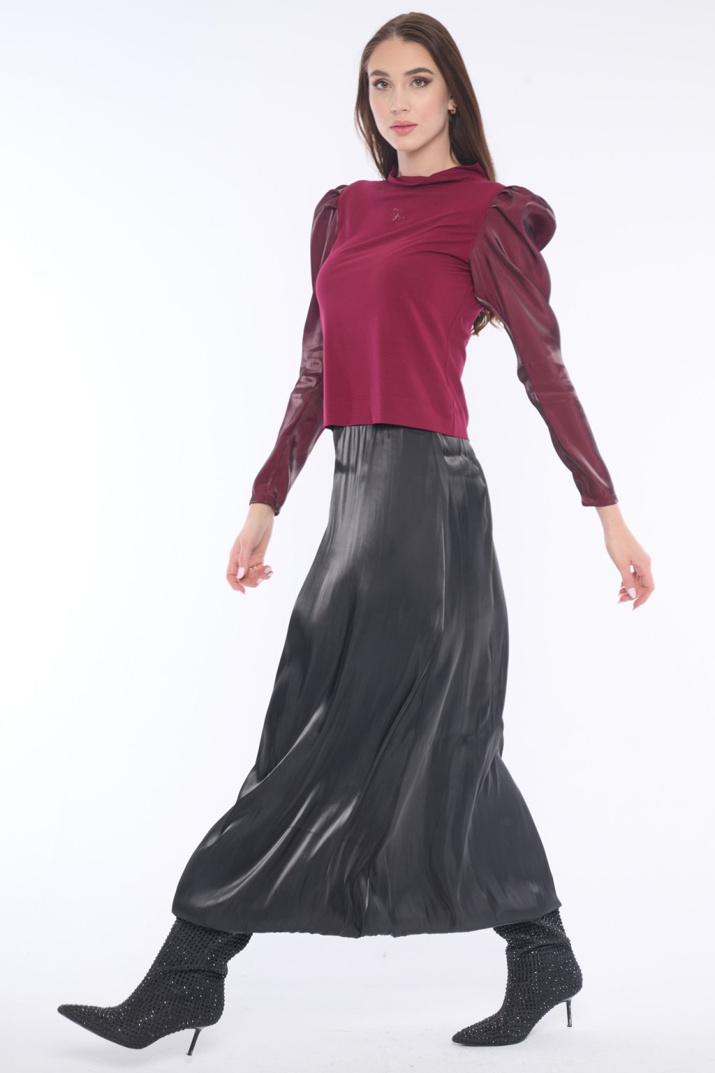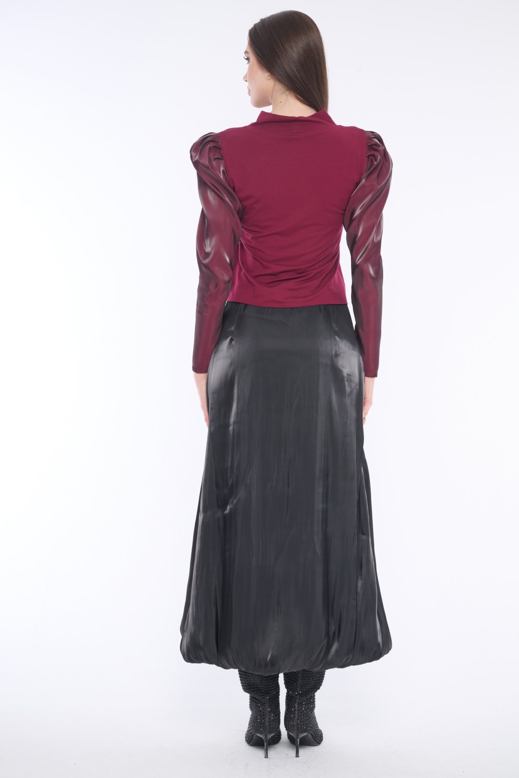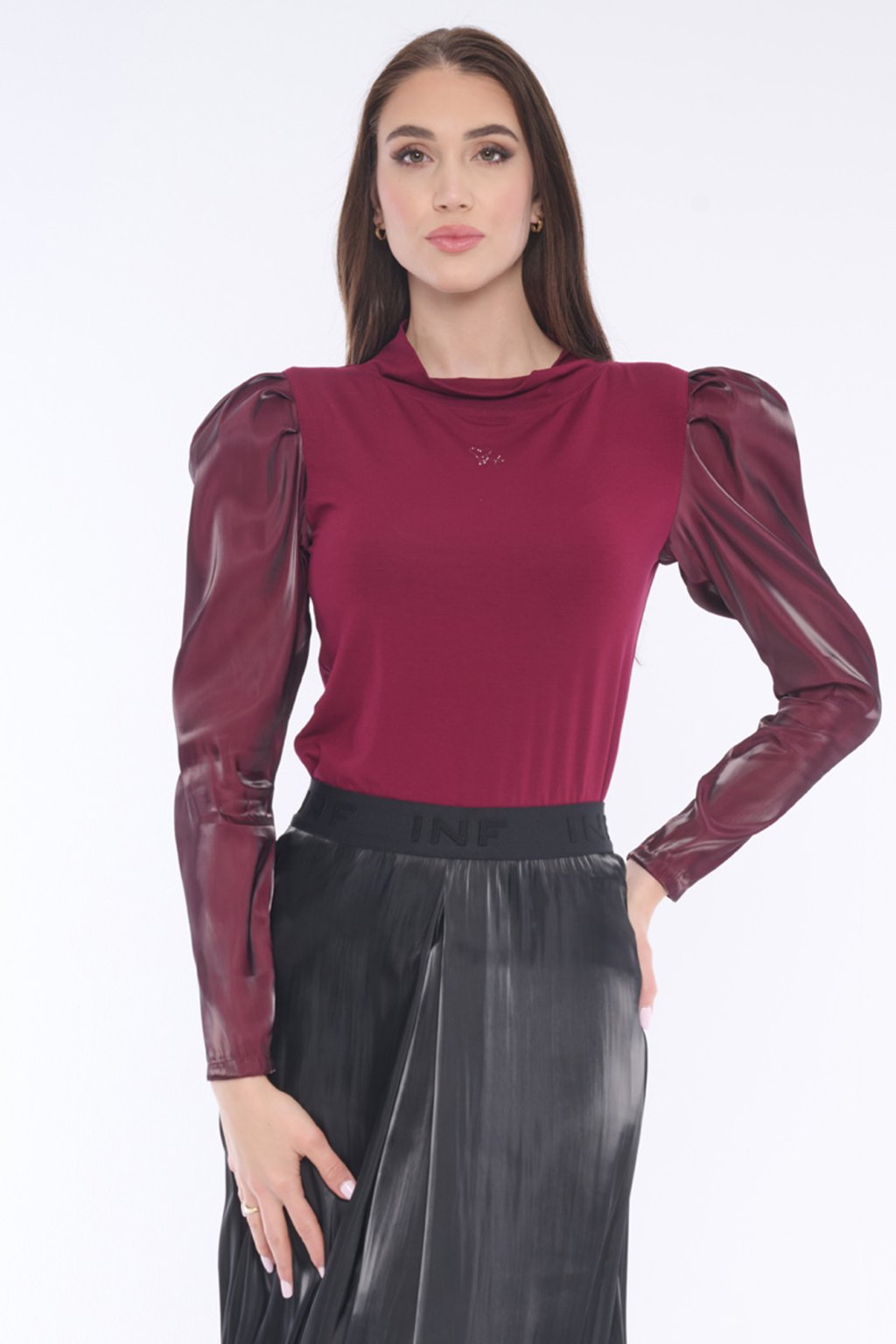 Tričko se stojáčkem s nabíranými rukávy z lesklé látky doplněné jkrystaly Preciosa.